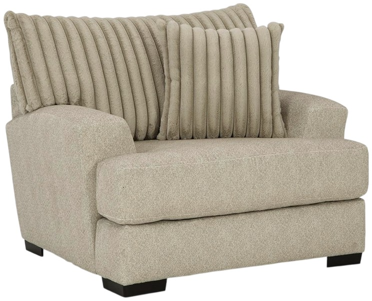 Redefine your living space with the graceful simplicity of the 938 collection. Designed with plush, wide track arms and soft chenille-like fabric, this group blends relaxed comfort with high-end polish. The geometric patterns and ribbed textures on the accent pillows and ottoman add visual interest while maintaining a serene, tonal palette.Read More