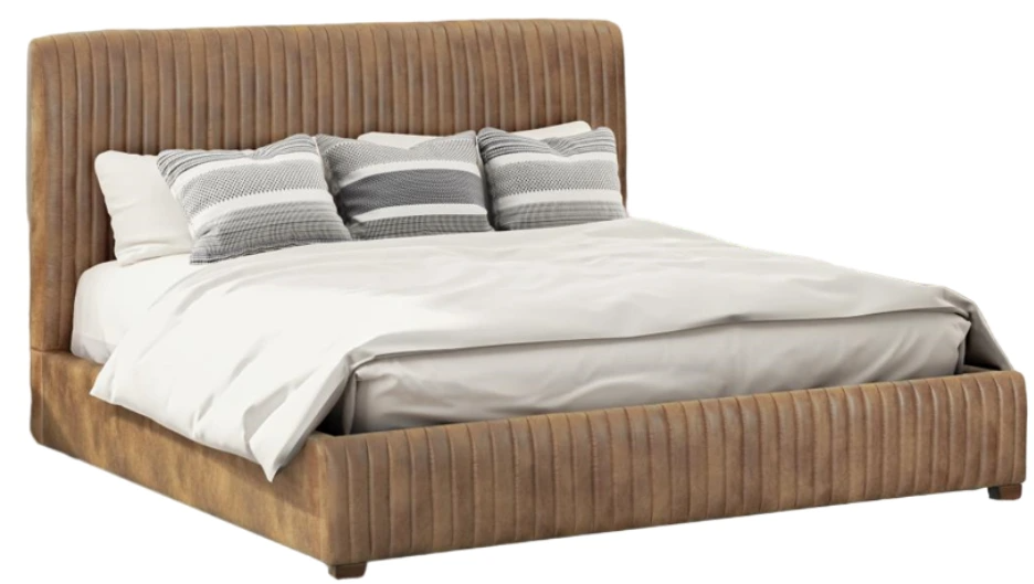 Elevate your bedroom with the refined elegance of the Yellowstone bed here luxe design meets everyday comfort. Wrapped in a rich, camel-toned faux leather, this bed makes a bold statement with its fully upholstered frame and dramatic vertical channel tufting.Read More