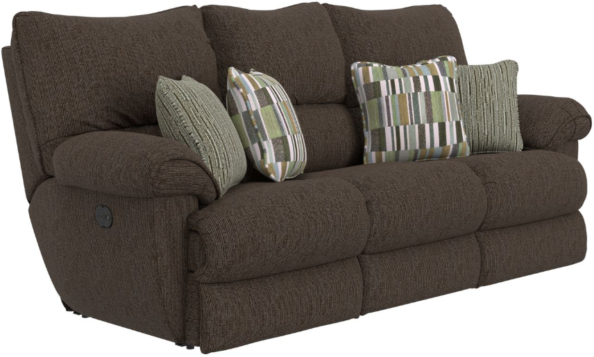 The Catnapper® Lenny chocolate power reclining sofa offers a sleek design with pillow arms, a semi-attached back, and power lay-flat reclining, perfect for your living room for exceptional comfort and relaxation.Read More