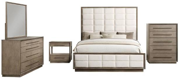 Featuring a California king-size bed, dresser, mirror, nightstand, and chest this set combines a cream finish with washed oak accents for a cozy aesthetic. The durable construction and elegant design make it an ideal choice for those looking to enhance their bedroom's ambiance with a touch of sophistication and comfort.Read More