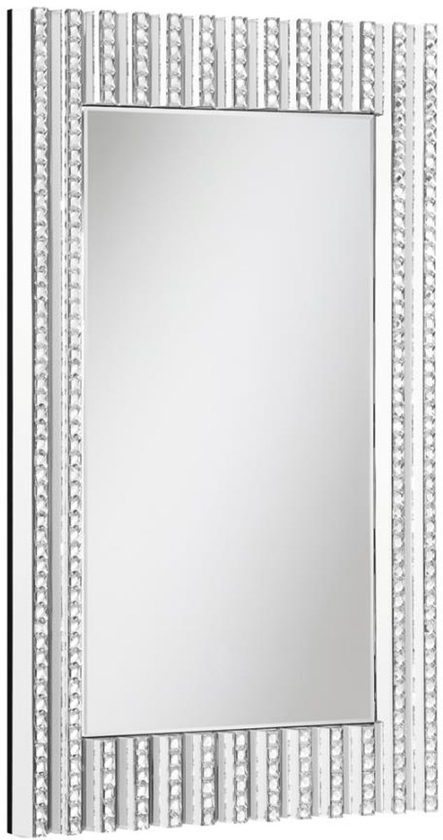 Sophisticated vertical stripes of faux crystals add glam details to this wall mirror