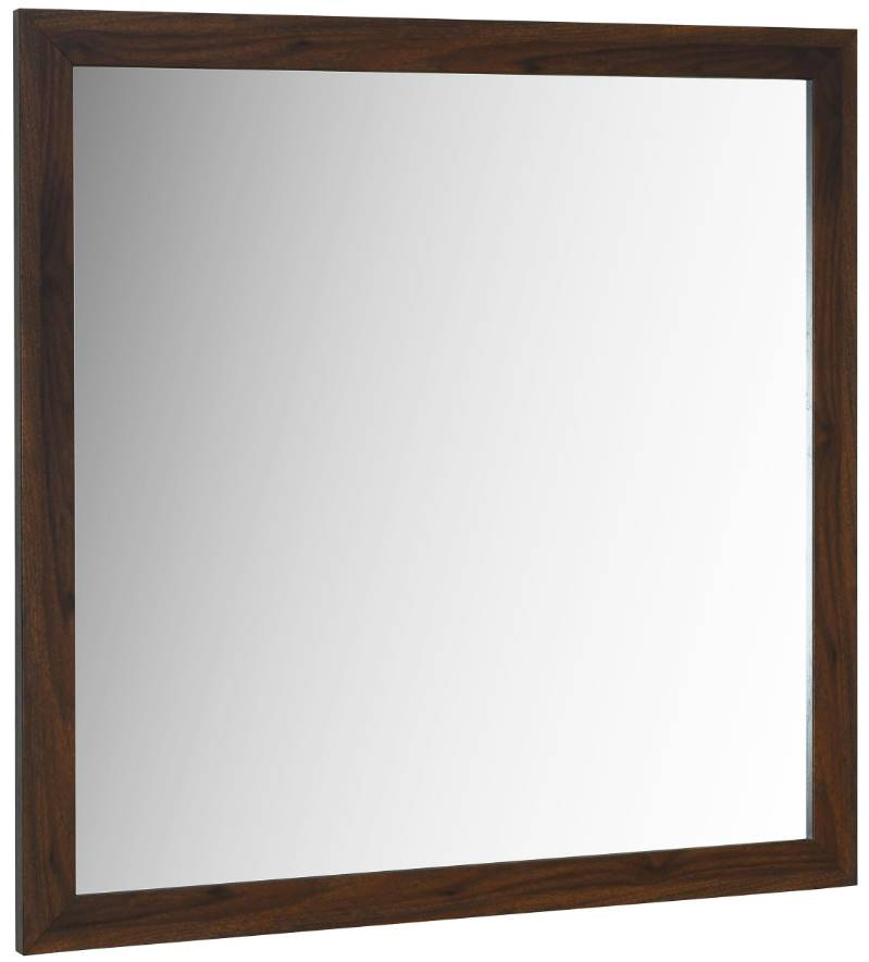 Accentuate your dresser top with a modern frame mirror that adds lightness and reflectivity. A walnut wood grain finish is rich and deep, offering sophisticated style to the matching dresser. Flat glass is fresh and contemporary, perfect for a refined bedroom ambiance.Read More