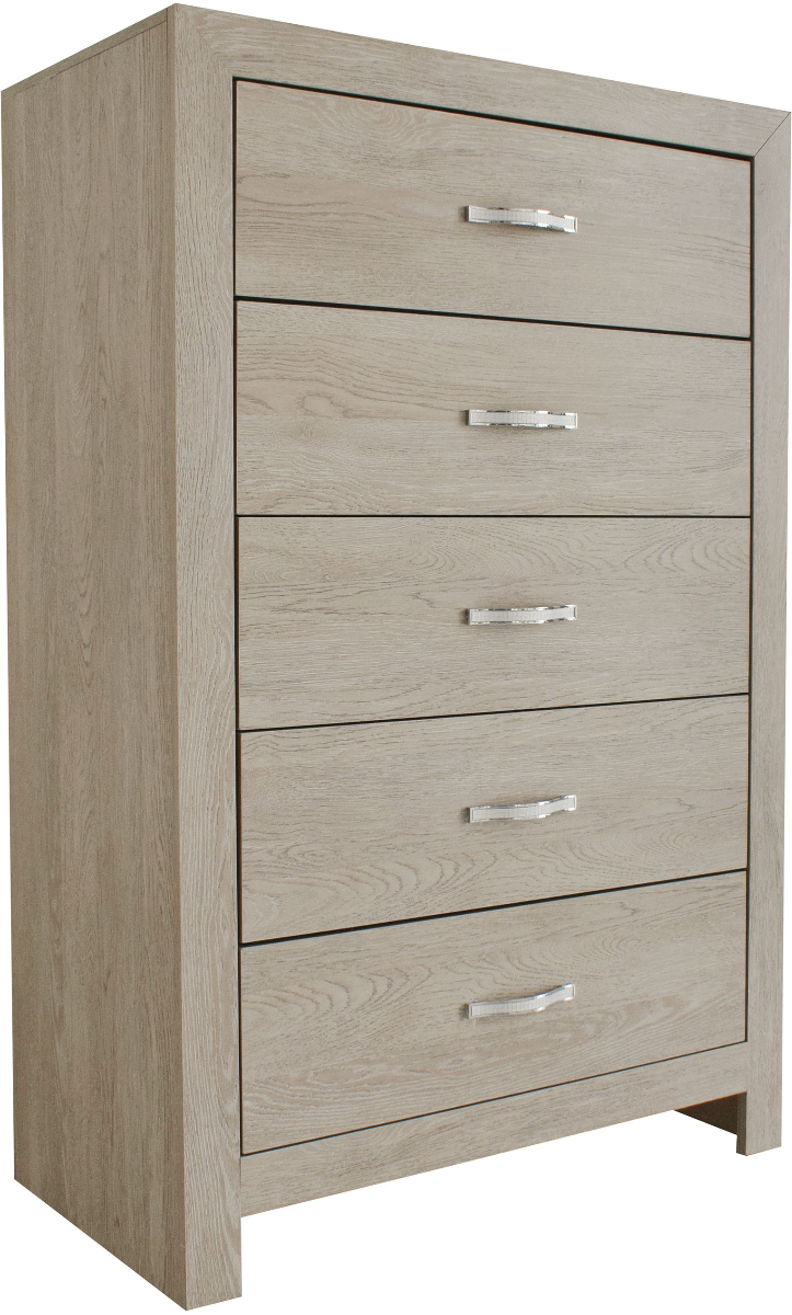 This Jaylen chest exudes contemporary charm with its elegant and minimalist design. The sleek lines and sparkling metal handles of the spacious dresser and chest provide ample storage with a sophisticated edge.Read More
