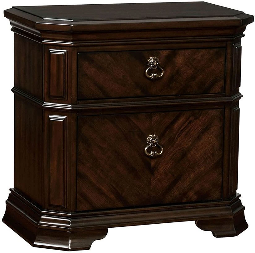 This stately night stand features a classic rich espresso finish, clipped corner and strong trim lines grounded them in sophisticate appeal. The deep wooden grain patterns on the drawer face combine with the antique pulls to exude elegance.Read More