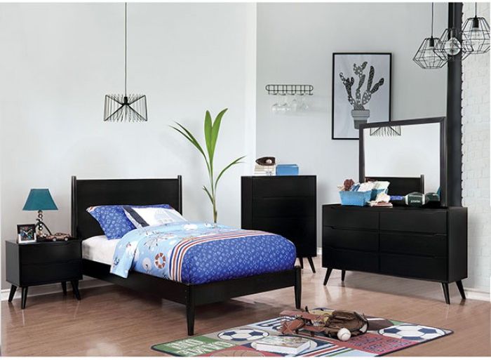 For a quick modern update to your home, this collection will add that trendy mid-century appeal. Featuring a sleek black finish and wooden headboard, this panel bed is complete in a platform style with an included mattress ready slat kit.Read More