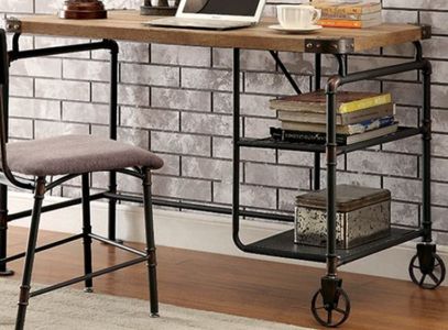 Furniture of America® Olga desk with industrial design and metal construction. Take it back a few decades with this industrial inspired desk. The visible piping framework is finished with an antique black to create an authentic throwback atmosphere.Read More