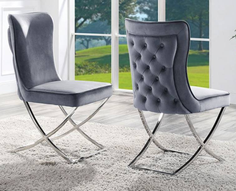 How about a modern marvel on your very own dining space? This brilliant piece features an upholstered gray velvet fabric padded seat held up by two legs finished in chrome. Edges have welt trim, while the unique backside features beautiful, deep button-tufting.Read More