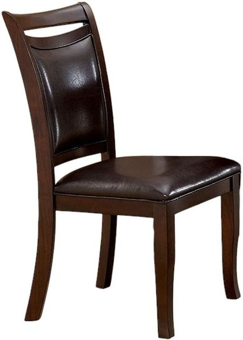 Finished in dark cherry, these chairs showcase a simple yet elegant design enhanced by padded leatherette seats and backs for lasting comfort. The rich finish highlights the clean lines, while the supportive construction ensures durability, making them a refined addition to any dining space.Read More