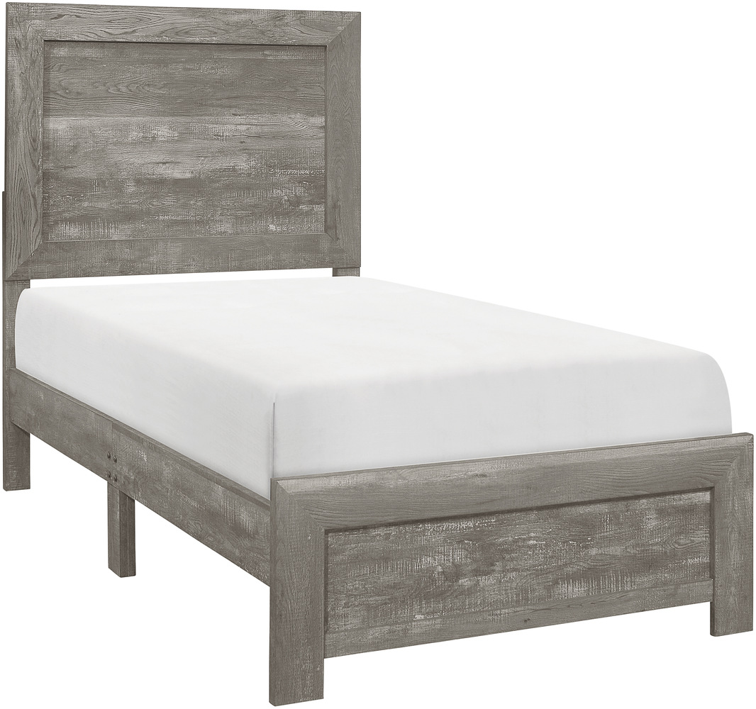 Modern lines and rustic styling are paired to create the look of the Corbin collection. The 3D printed paper veneer’s texture is highlighted by a gray finish for a realistic wood look. Subtle framing defines the profile of the twin size panel headboard and footboard, further lending to the unfettered design of the collection.Read More