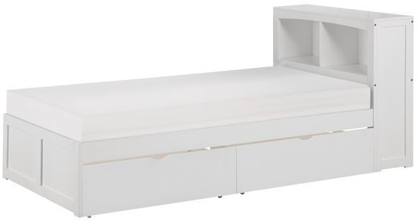This transitional twin bed is featured in a white finish making it an appropriate choice for a number of youth bedroom settings. The bookcase headboard allows for convenient storage within arm’s reach.Read More