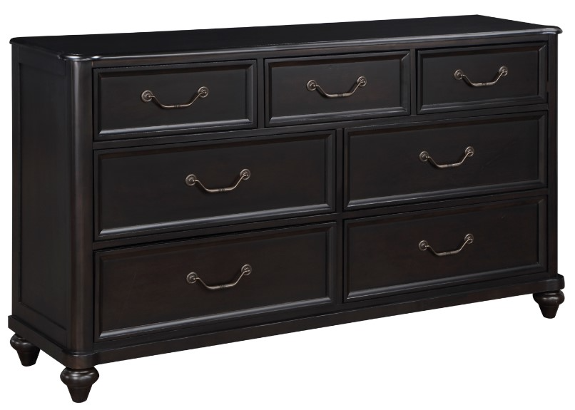 The traditional profile of the Herman collection is achieved with a perfect blend of classic elements that create a look that complements the style of your bedroom. Turned feet provide support to the classic design of the dresser. The piece features charcoal brown finish, over birch veneers, highlighting the beautiful wood grain.Read More