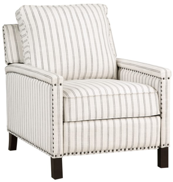Traditional accents abound in the design of the Landrum collection, their understated elegance making for classic addition to your living room. Nailhead trim and dark brown finished solid wood legs complement the striped textured fabric that covers the chair are perfect for your active home.Read More