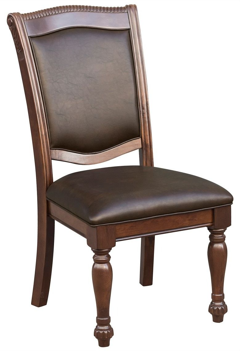 Elegantly designed for the traditional dining room is the Lordsburg collection. Brown faux leather covers the seats and backs of the wood-framed chairs while the magnificent parquet veneer is highlighted by the brown cherry finish.Read More