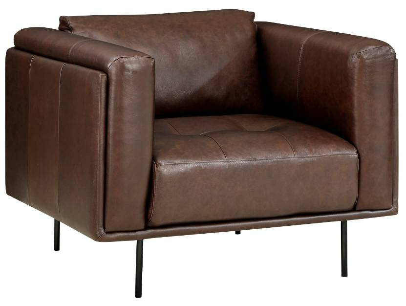 The brown top-grain leather covers the chair where the hand touches, with split-leather match covering the remaining surface.