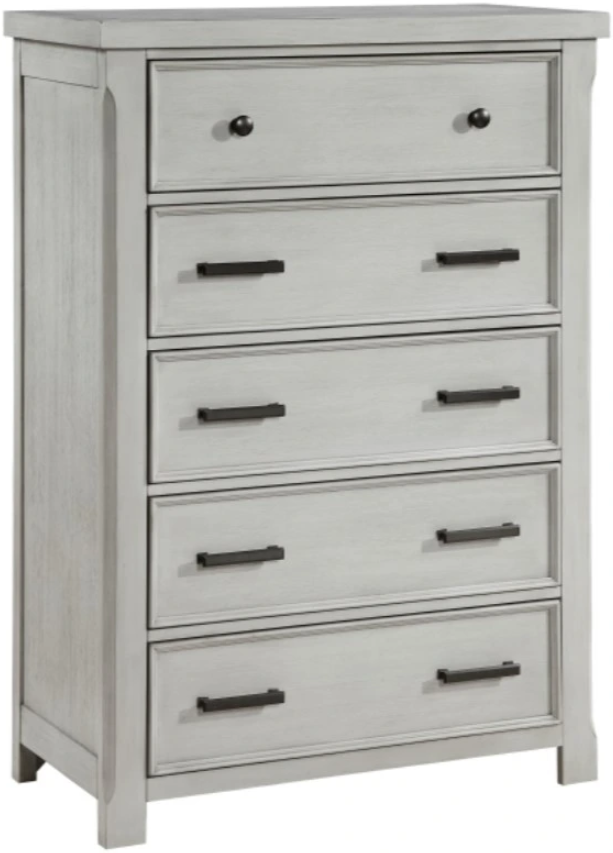 The chest offers ample storage with smooth-ball bearing glide drawers, perfect for organizing your essentials. This collection is ideal for anyone seeking a stylish and practical solution for their bedroom. Coordinating Queen bed, Eastern King and California King bed, nightstand, mirror and dresser are also available.