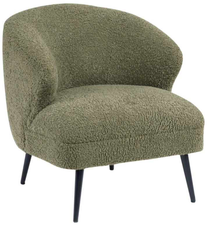 The textured bouclé fabric adds warmth and style, while the sleek metal legs provide sturdy support and a touch of contrast. Whether placed in a living room, bedroom, or reading nook, this chair is the perfect spot for relaxation while making a chic statement in any space.