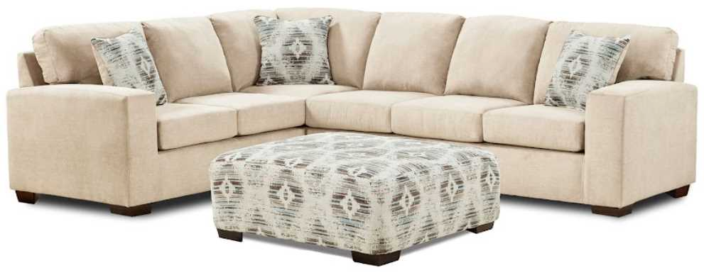 2 Piece living room set: Corner sectional with free square ottoman
