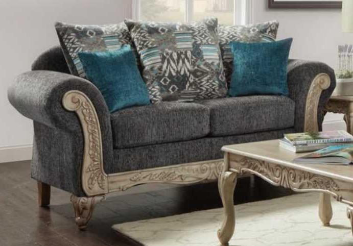 Add a touch of elegance and comfort to your living room with this Camila Loveseat from Neoliving. Shown in gray fabric, this loveseat features a light brown carved wood frame and rolled arms. Add this piece to your living room to create a stylish space that everyone will admire.Read More