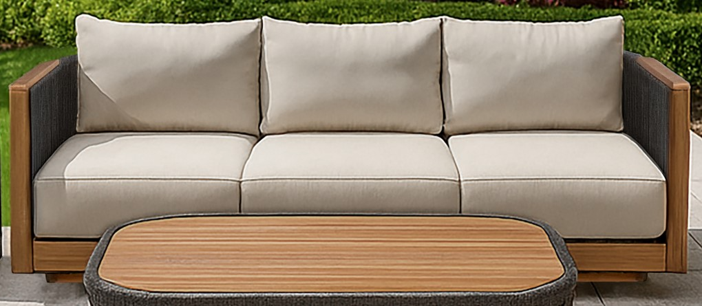 Rich Wood Accents: Accented with beautifully finished solid wood armrests and a sturdy wood base, this sofa brings natural warmth and timeless charm to any outdoor seating area, blending elegance with durable, lasting construction.