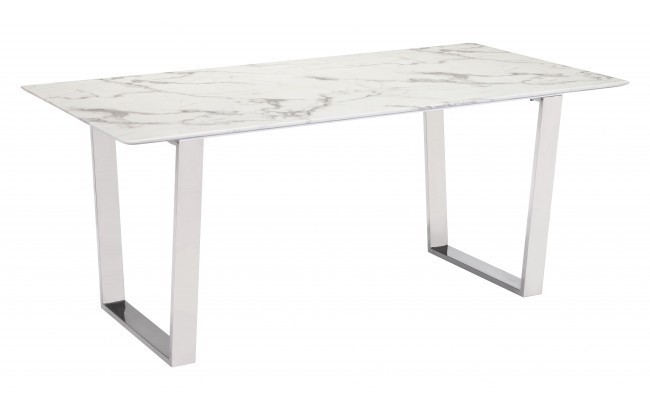 On-trend and decidedly modern, this sophisticated dining table will be on every designers list. Gorgeous from every angle, the rectangular faux marble top seems to float atop its simple brushed silver base. Pair with the Atlas console for use as a sideboard or extra serving surface.Read More