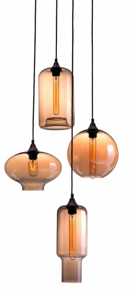 The Lambie ceiling has a Bohemian vibe, gracefully four glass amber globes surround unique filaments, suspended elegantly by precise cords from a matching rust mounted ceiling plate. Create a impeccable entrance for lobby's, stairwells, or vaulted ceilings; you can not take your eye of this amber colored perfection.Read More
