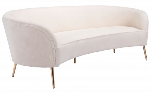 The Luna Sofa has a beautiful curved shape that fits in any space, modern, boho chic, or maximalist. This sofa is covered in soft tight knap textured polyester fabric with electroplated gold legs.Read More