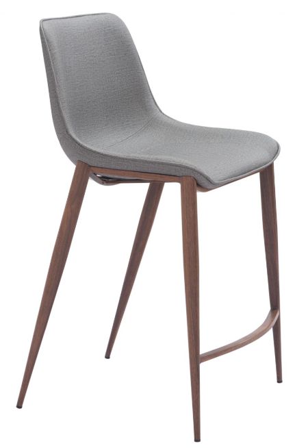 High design meets every day casual. This handsome counter stool with its slim profile pulls up perfectly to the bar. Its super comfortable curved seat is covered in gray faux leather with dramatic stitching. Matte brown Faux Wood legs are complete with protective plastic feet to keep your floors scratch-free.Read More