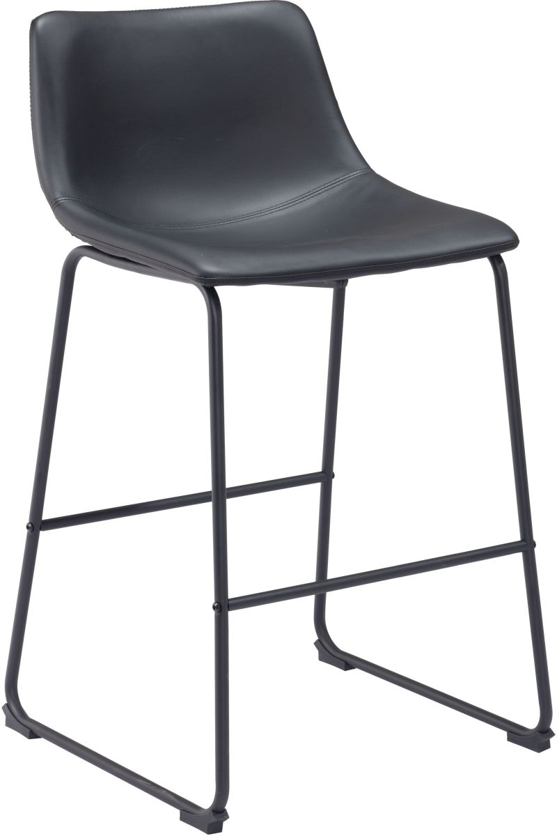 This counter chair's seat and back are built with a sculpted design for comfort. It's upholstered in a soft 100% Polyurethane fabric, with a slim profile metal base and two crossbars for stability. The frame is finished in matte black, for a universal appeal.Read More