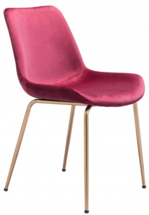 The Tony Dining Chair has glam and maximalist design and looks great in any space from modern to boho chic. The solid steel frame is electroplated with a gold finish and the firm seat and back are covered in a smooth velvet polyester fabric. This chair fits in any dining room, home office, or even as a bedroom accent chair.Read More